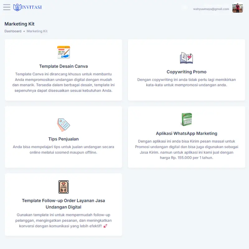 Tidak hanya undangan website, Anda juga bisa jualan undangan digital berbasis foto & video dengan potongan harga 50%. Tambah variasi produk dan tingkatkan peluang jualan Anda!